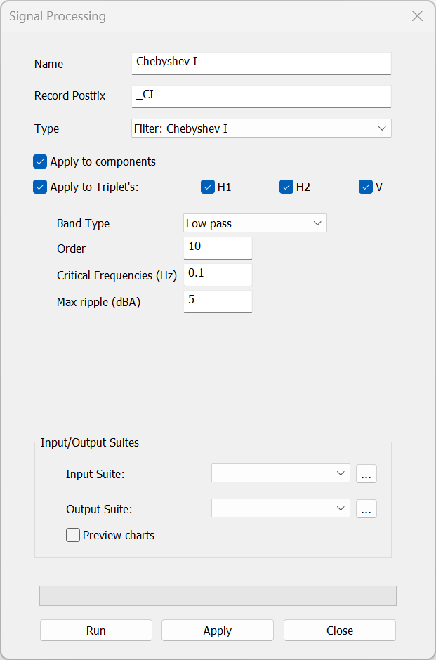 Figure: Chebyshev I filter dialog