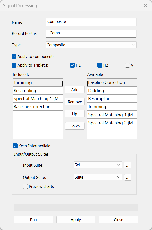 •Apply to Triplets – Choose which record components (H1, H2, Vertical) to process.